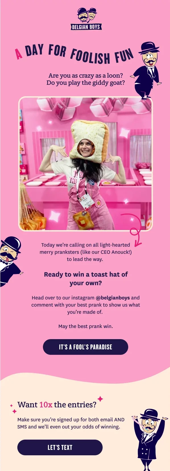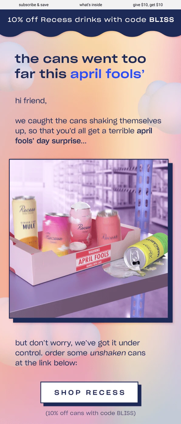 April Fools’ isn’t about selling the most products, it’s about engagement, awareness, and building a personality for your brand. You should treat it as a playful experiment, not an opportunity to sell.