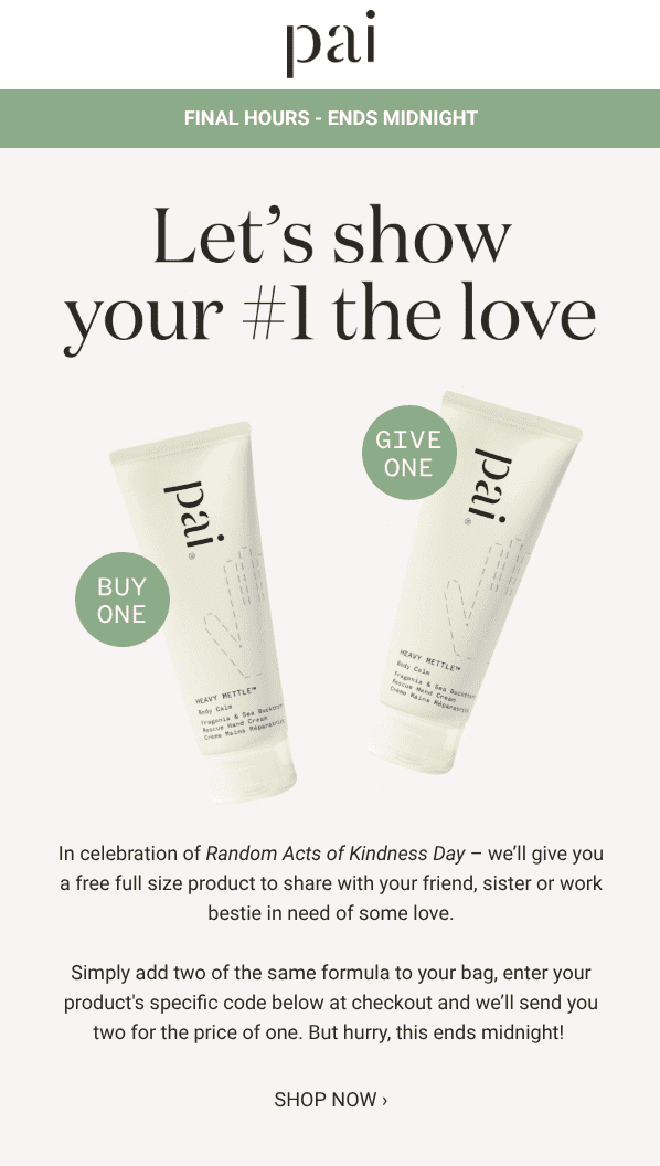 However you choose to celebrate this day, know that a single well-crafted kindness email can generate positive emotions around your brand more powerfully than a long promotional campaign. It’s a great way to stand out from your competitors who push a sale all month long.