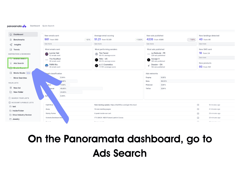 Go to Ads Search on the lefthand panel under Inspiration and Searches.