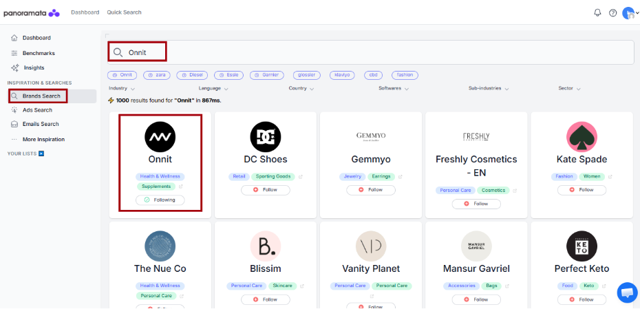 Panoramata gives you multiple ways to find inspiration from competitors and top brands in your space.