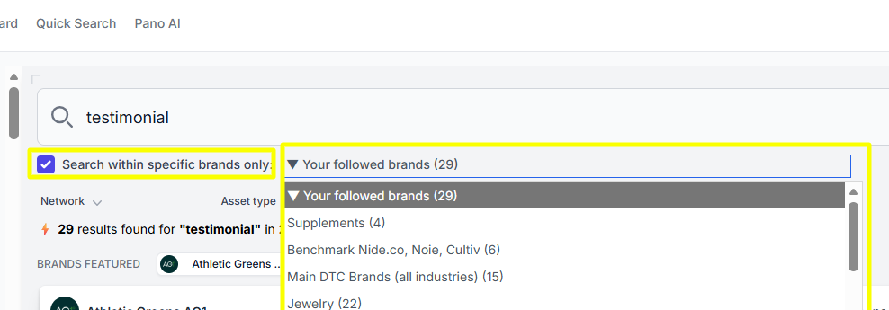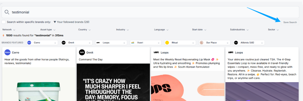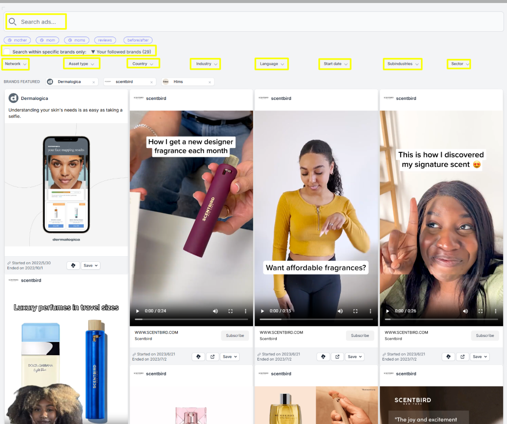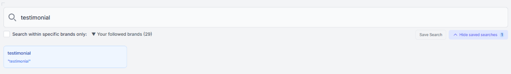 For example, if you want to explore ad inspiration only from the brands you follow, simply click the checkbox as shown in the screenshot. By default, if you’re already following brands on your account, the platform will automatically search within those followed brands.