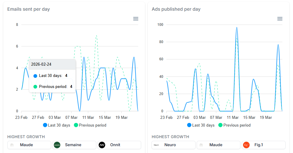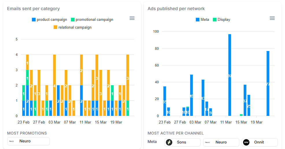 The dashboard is updated in real time, and you receive a summary every Monday morning by email. It shows :