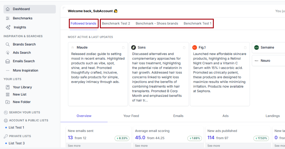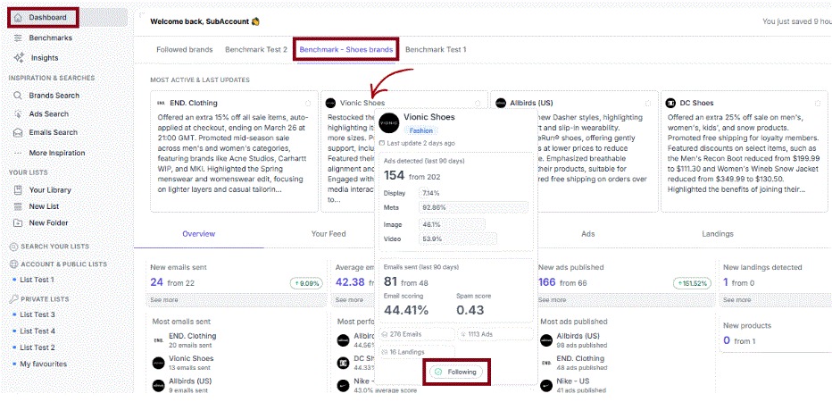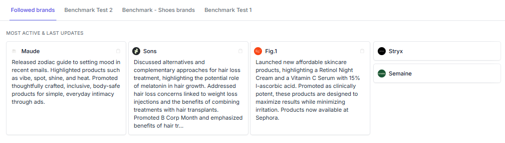All brands you follow are automatically added to the Followed Brands group, and its dashboard and benchmark data update accordingly.