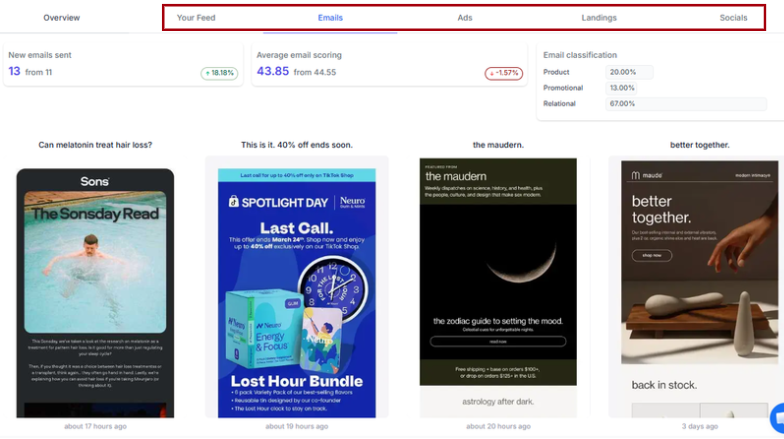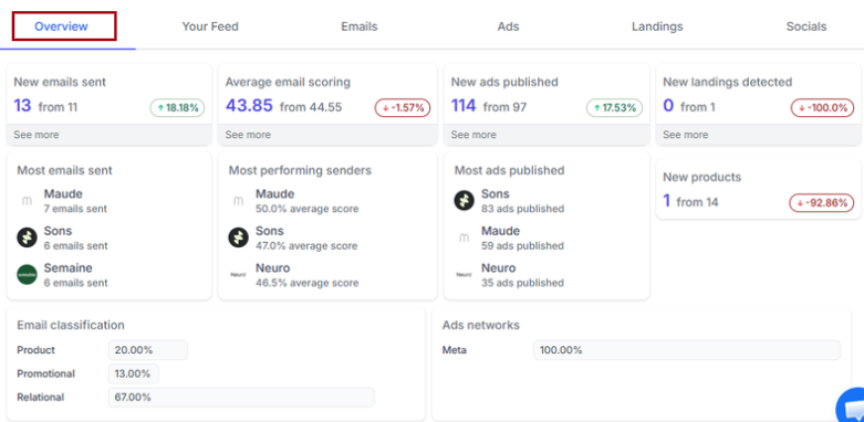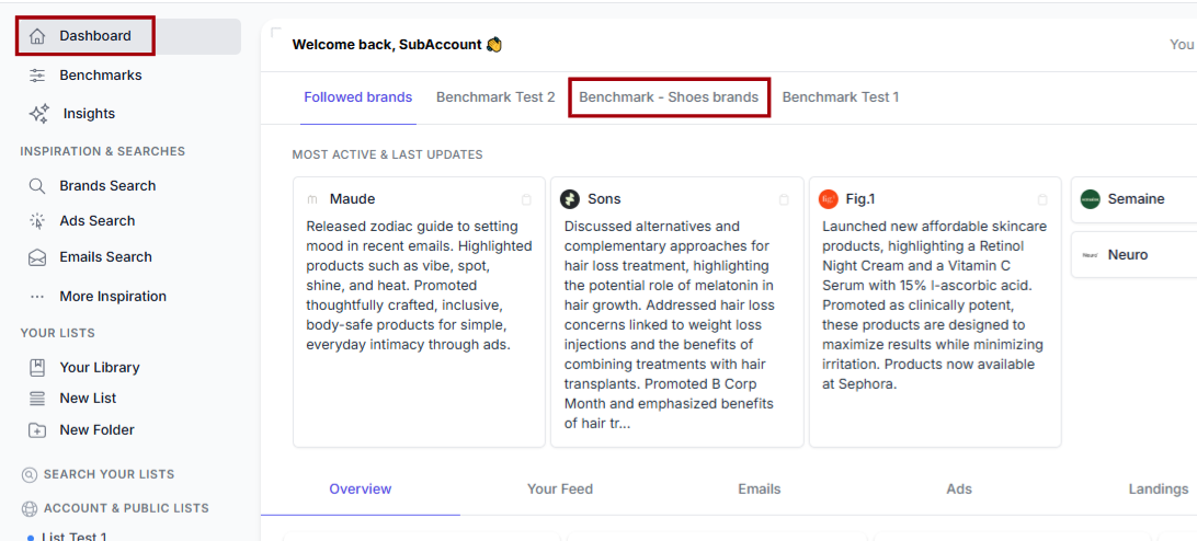 To track specific brands, add them to the home page by either following them or including them in a benchmark.