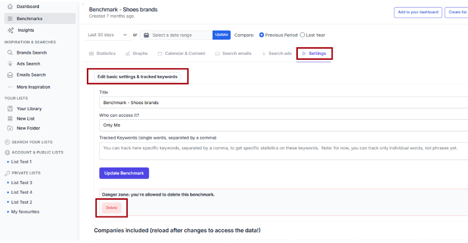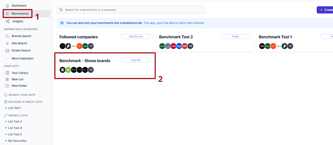 To add more brands to an existing benchmark dashboard, follow these steps: