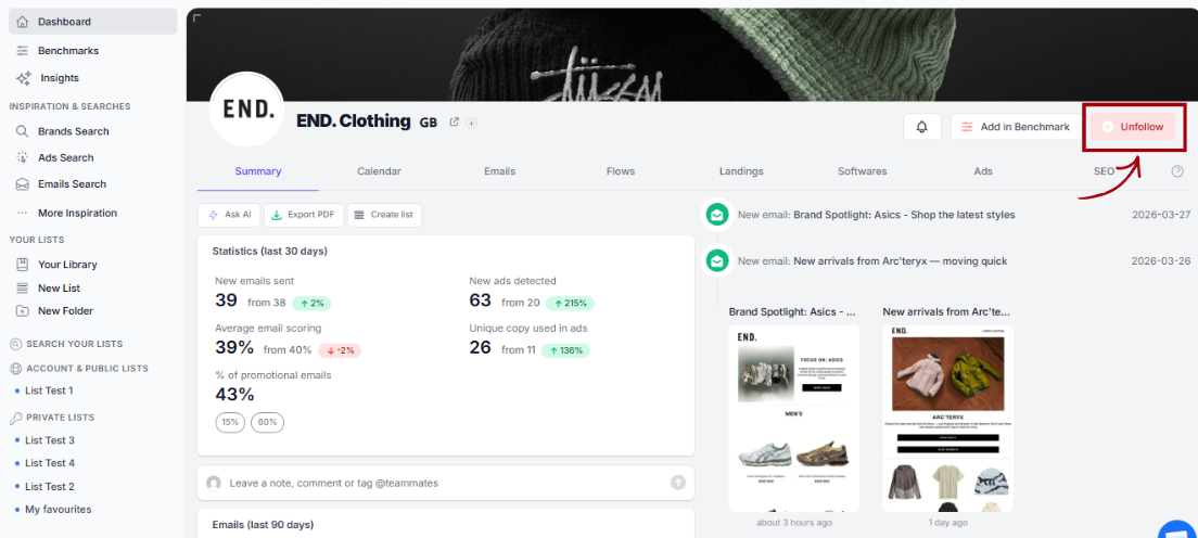 When you unfollow a brand, it’s automatically removed from the Followed Brands group, and the related data is removed from its benchmark and dashboard.