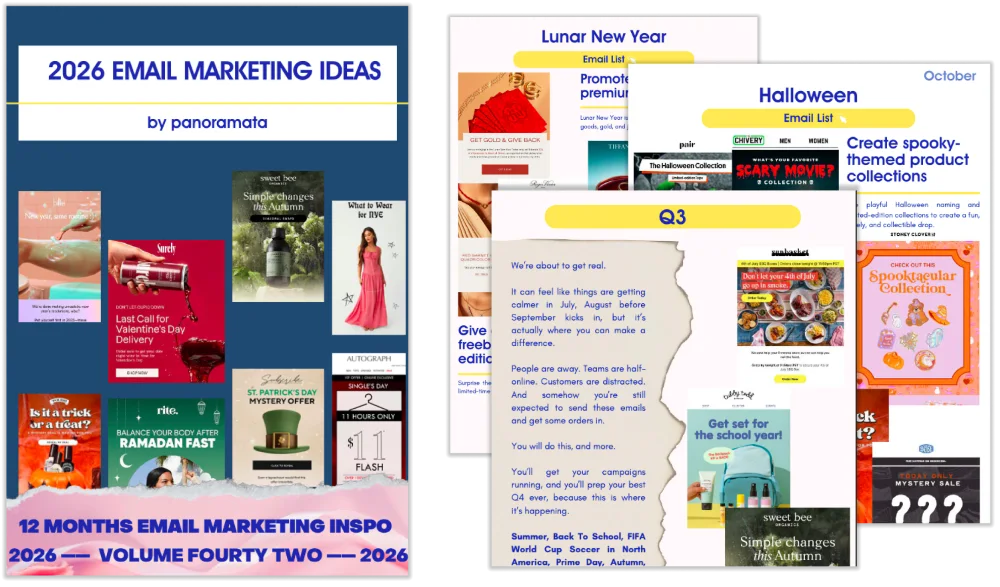 My main advice: start by skimming this whole playbook in 2 minutes, which will give you a preview of the whole year. Then you’ll be able to reference to this playbook later. For each month, we’ll give you: the main insights and moments to keep in mind, best-in-class examples from top brands, and full swipe-files with emails, ads, landing pages, and more.
